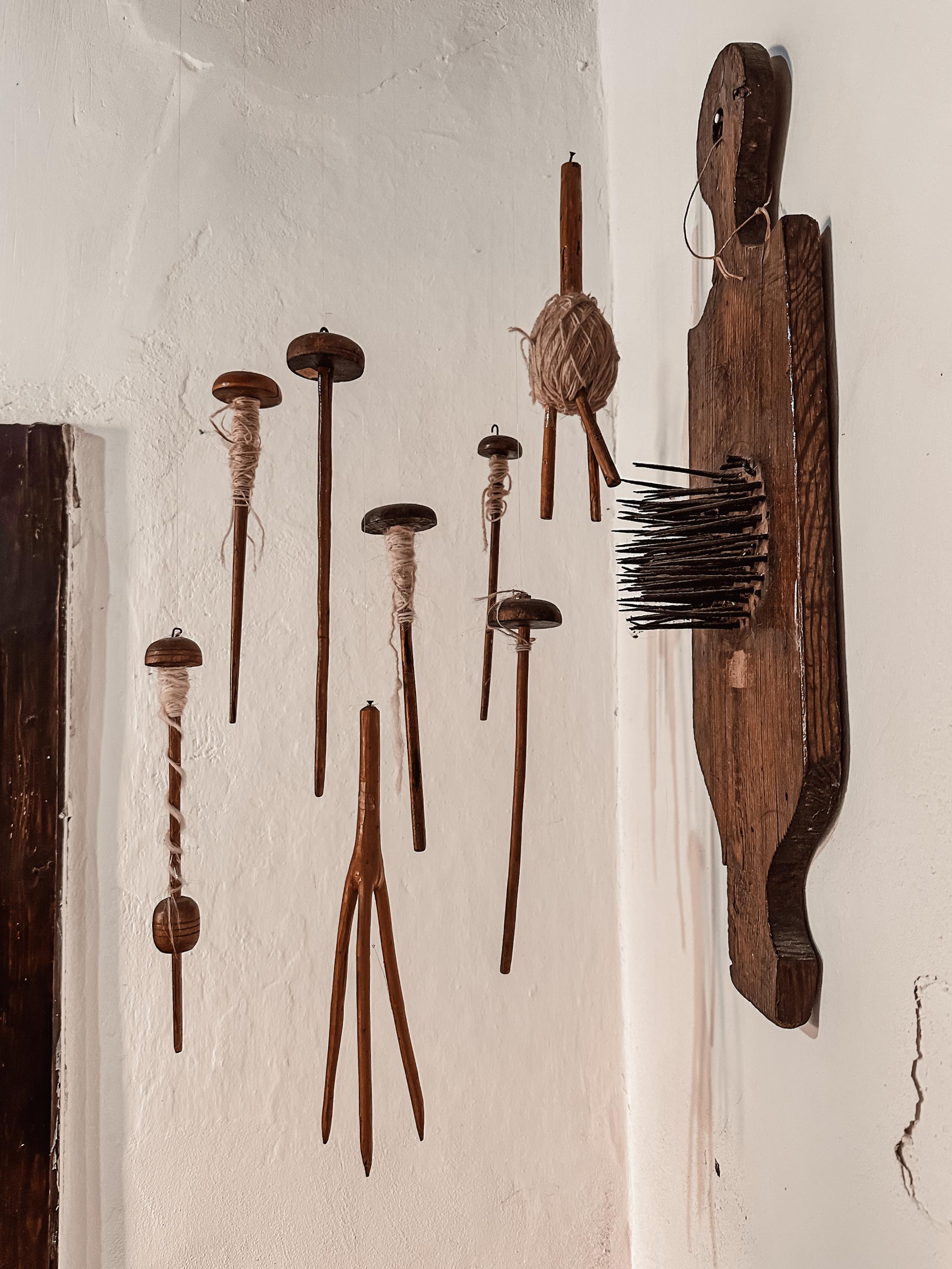 All’ingresso, un grande telaio fa da protagonista insieme agli altri strumenti per la filatura a mano; in cucina, è possibile soffermare lo sguardo su un elevatissimo numero di oggetti funzionali alla preparazione e conservazione delle vivande. Le camere da letto, ricostruite fedelmente, raccontano di una vita intima lontana dagli orpelli e devota alla funzionalità.