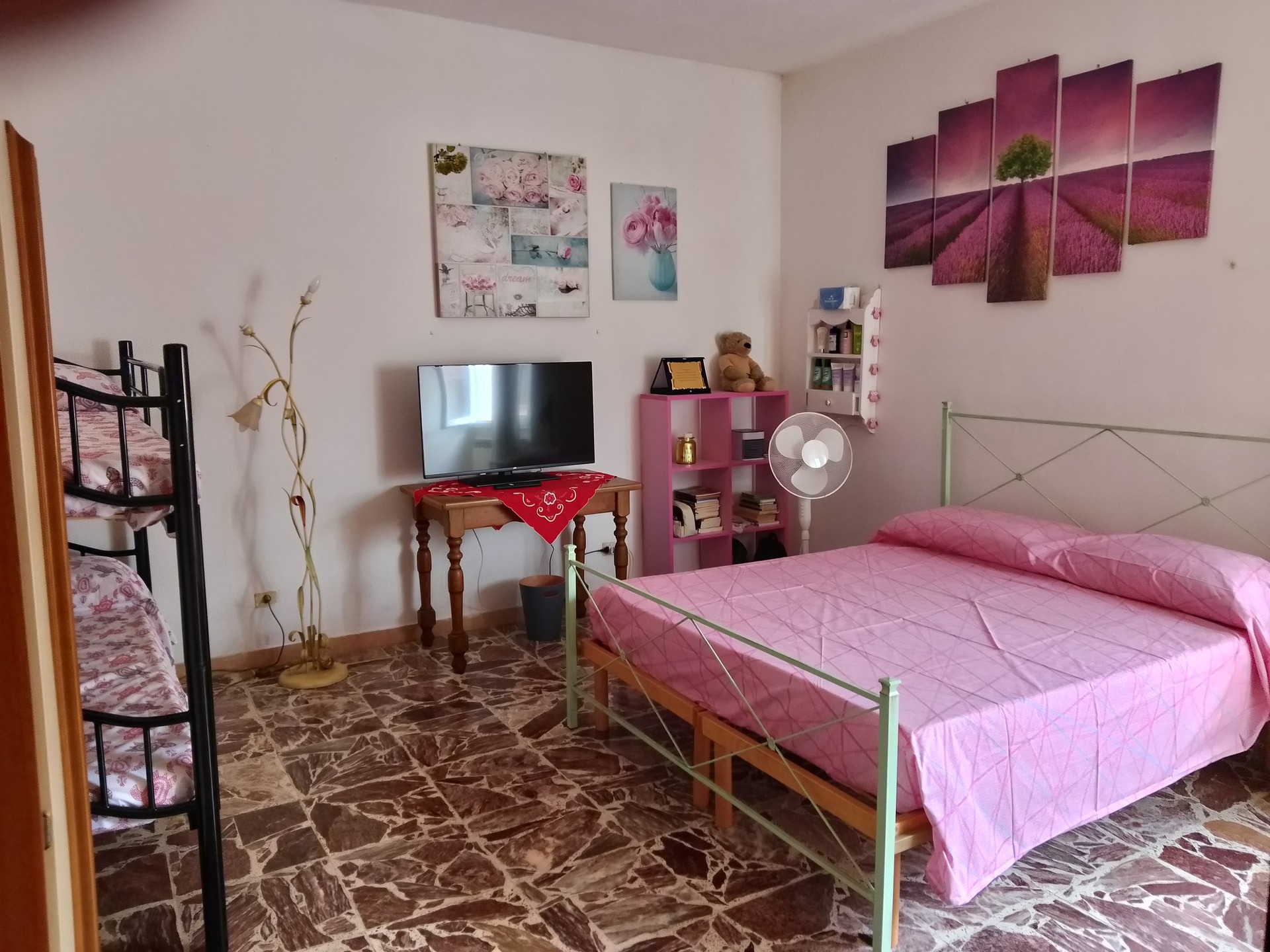 Casa Muscas offre un’accoglienza semplice e autentica, ideale per i pellegrini del Cammino Minerario di Santa Barbara. La struttura dispone di una camera con quattro posti letto (un letto matrimoniale e un letto a castello) e di un bagno condiviso, oltre a una sala colazioni utilizzabile anche per consumare la cena al sacco dopo la tappa di cammino.