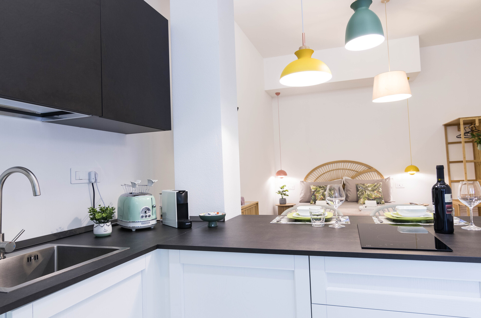 L’alloggio dispone di bagno privato con ampia doccia, antibagno con lavatrice ad uso esclusivo e cucina completamente attrezzata con macchina da caffè, microonde, lavastoviglie e tostapane. Sono inoltre presenti TV, aria condizionata caldo/freddo e connessione Wi-Fi gratuita.