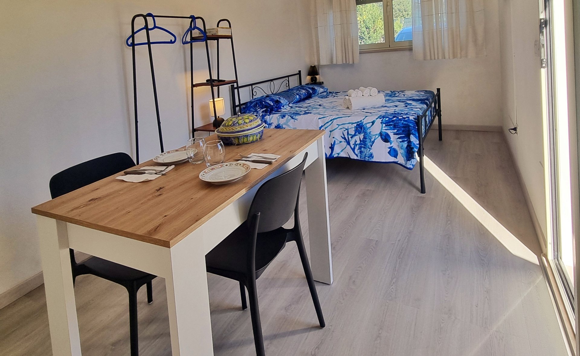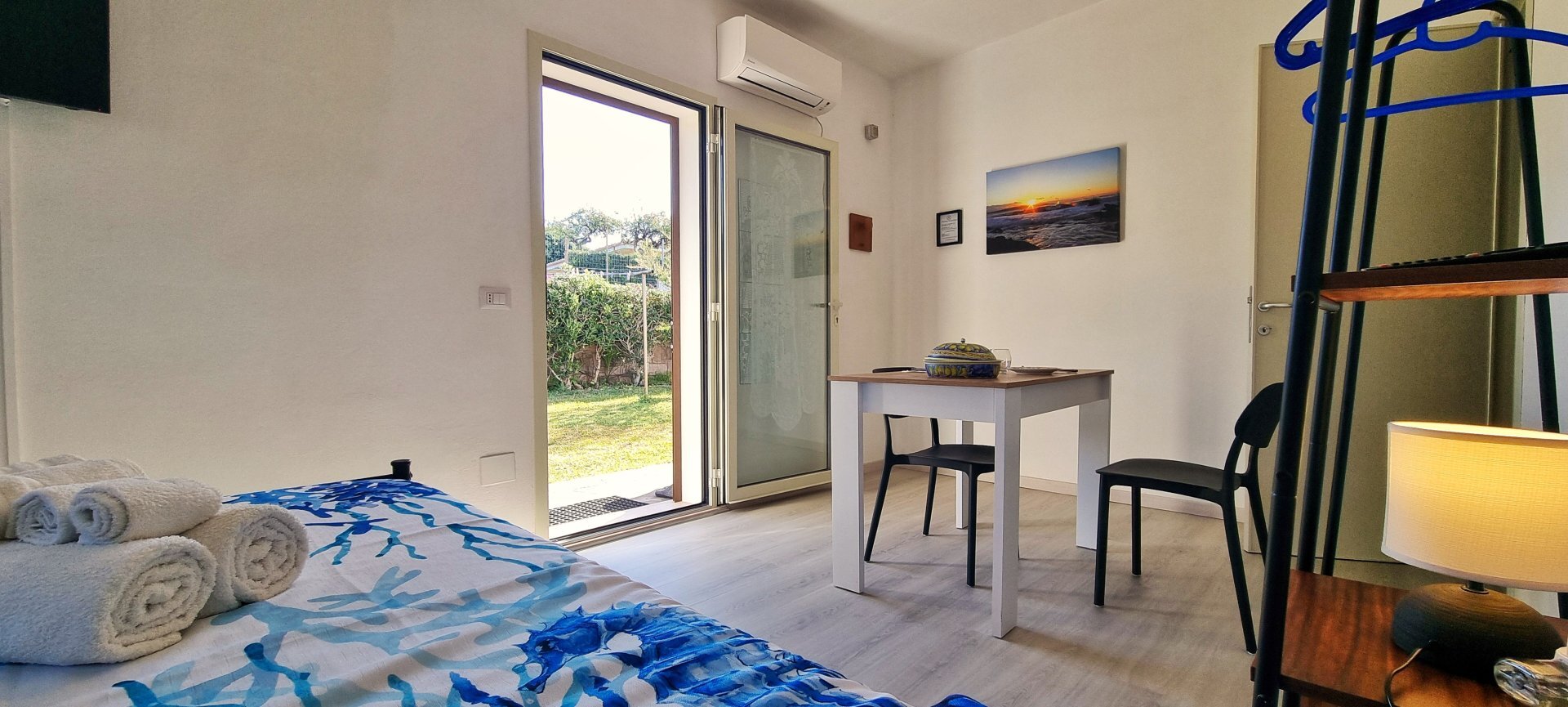Offre 2 camere matrimoniali con bagno privato e accesso totalmente indipendente dall'ampio giardino.